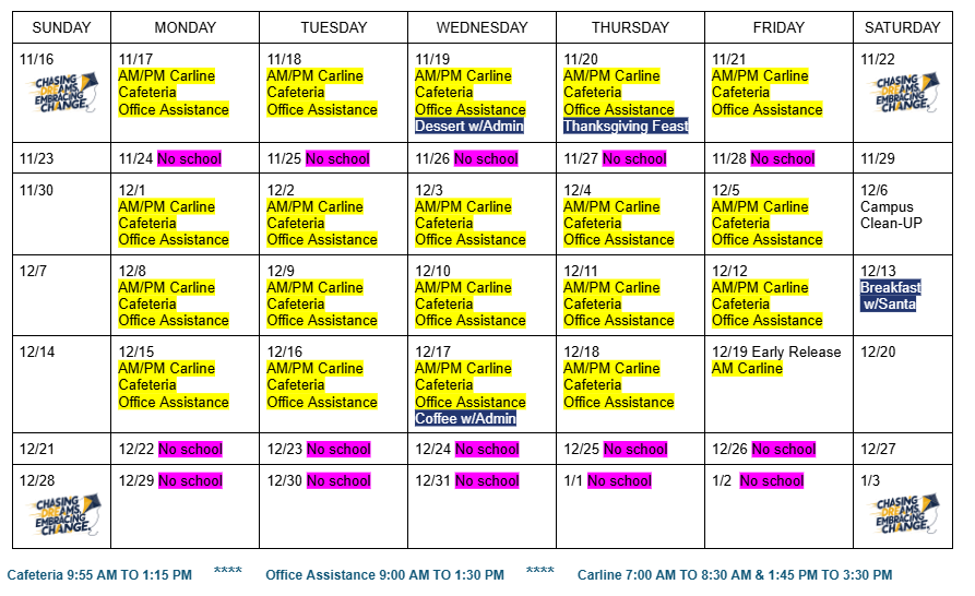 These service hours are available every school day. You do not need to sign up for these hours. Please go to the front office to sign in.