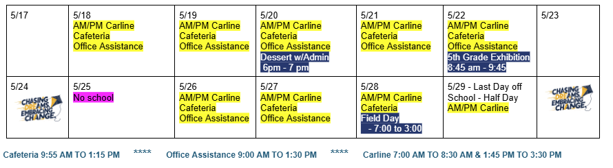 Carline 7:00 AM to 8:30 AM & 1:45 PM to 3:45 PM